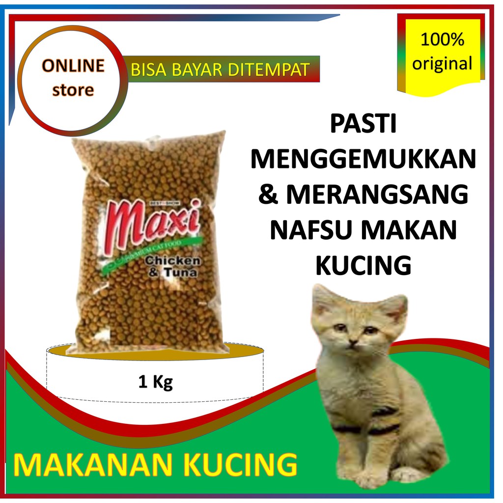 Makanan Pakan Kucing Kering Maxi 1kg Cat Food Penambah Nafsu Makan Kitten Persia Anggora Himalaya Shopee Indonesia